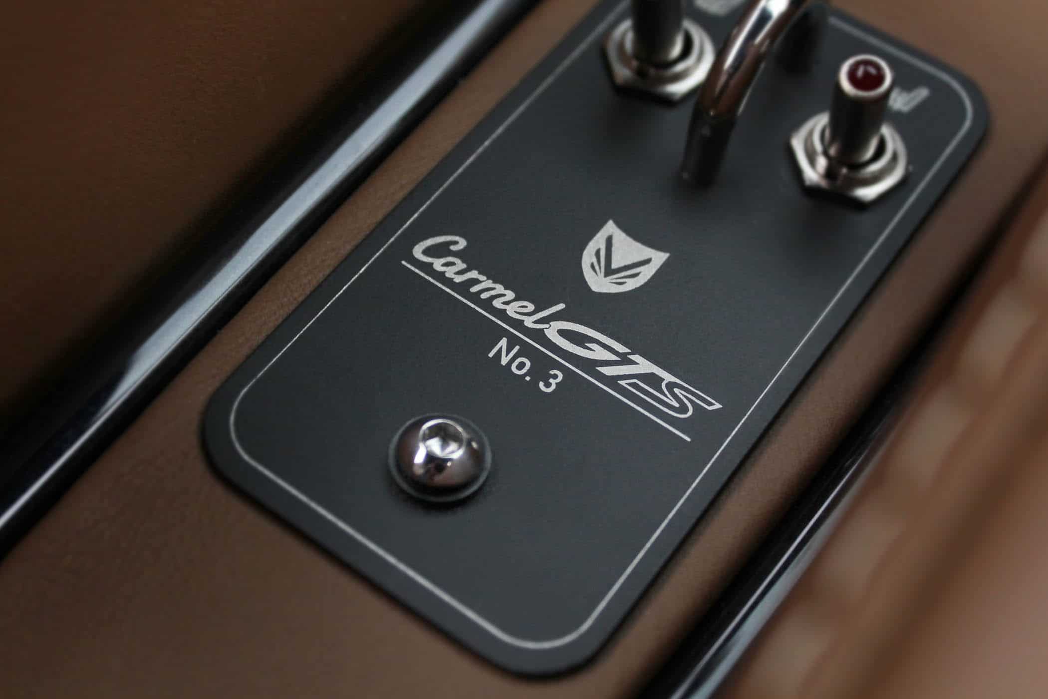 Gloss black hoops, gas cap, steering wheel and mirror uprights elegantly trim the Carmel GTS.