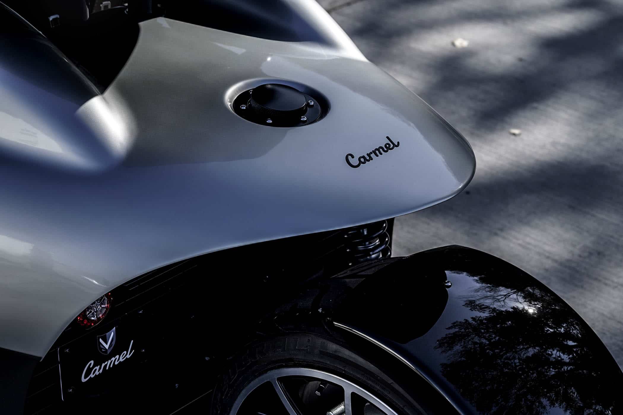 Gloss black hoops, gas cap, steering wheel and mirror uprights elegantly trim the Carmel.